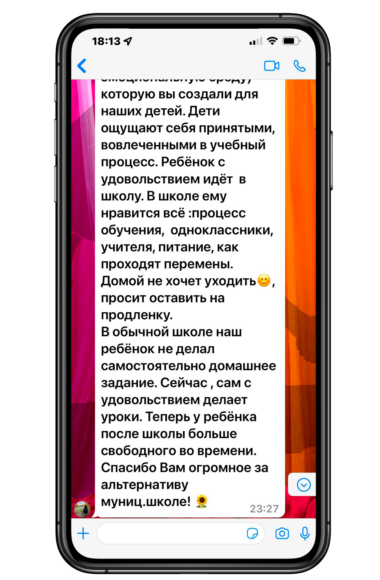 Отличная школа, хорошие педагоги. Ребенок с радостью идет в школу и не хочет уходить. Питание, уход, забота, множество развлечений, продленка, экскурсии, доп. занятия. Ребенок доволен, родители счастливы! ) Образование отличное, индивидуальный подход к каждому ученику. Нам очень нравится. Спасибо директору и всем учителям. Всегда приветливы и внимательны
