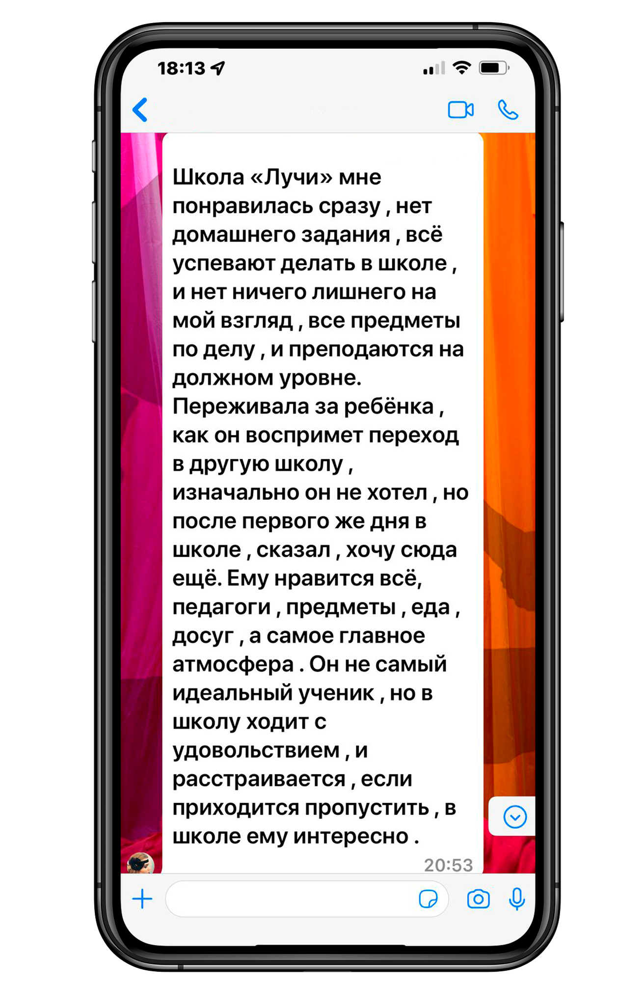 Обожаю нашу школу Лучи! Дружелюбная атмосфера и классные учителя, вкусное питание. Включены все доп занятия, а это значит что ребенка не надо никуда возить после школы. Детям интересно, а родители счастливы)) Очень рекомендую!